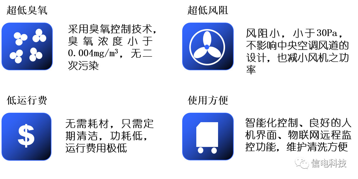 信電(diàn)樓宇中央空(kōng)氣淨化(hλ"↕★uà)系統采用(yòng)以下(xià)×"六大(dà)核心淨化(huà)技(jì)術(shù),達到(dào)高(gāo)效♠ 除塵、高(gāo)效殺菌、高(gāo)效除味和(hé)低(dī)→₩運行(xíng)費(fèi)用(yòng)等八大(dàβ×)技(jì)術(shù)特點,第三方權威檢測機(j<₽ī)構的(de)測試報(bào)告表明(míng)其極好(©$φhǎo)的(de)淨化(huà)效果。