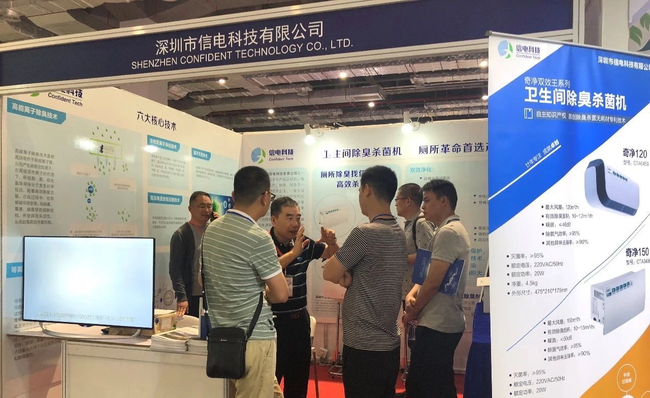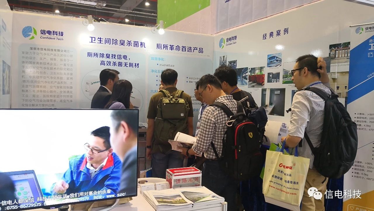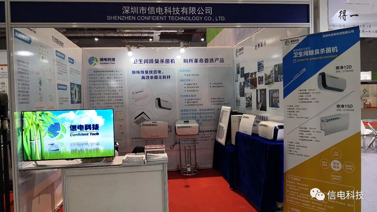 信電(diàn)科(kē)技(jì)攜奇淨系列壁挂式、吸頂式、落地(dì☆↑)式衛生(shēng)間(jiān)除臭殺菌₽§×'機(jī)參加了(le)這(zhè)次2018中國(guó)國(&guó)際廁所革命博覽會(huì)。
