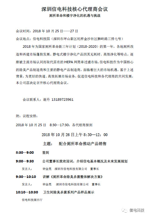 10月(yuè)26日(rì)上(shàng)午9點,伴随著(zhe)深圳信電☆€(diàn)科(kē)技(jì)董事(shì)長(cháng)鐘(zhōng↑&λ)博士的(de)歡迎辭,核心代理(lǐ)商會(huì)正式開(kāi)€&始。