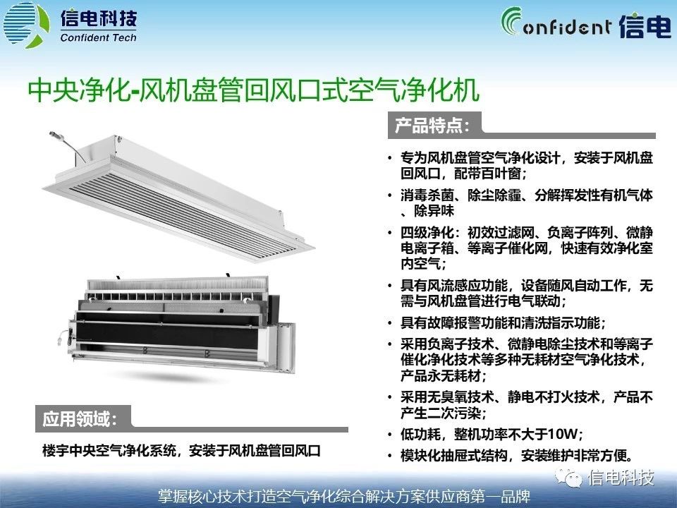 其中重點介紹了(le)2018年(nián)開(kāi)發成功的(de)風(fēng)≠$機(jī)盤管回風(fēng)口空(kōng £π£)氣淨化(huà)機(jī),該産品安裝和(héγ€↑)維護非常方便,無耗材設計(jì),除塵、殺∏₹"™菌和(hé)分(fēn)解甲醛三合一(yī)。