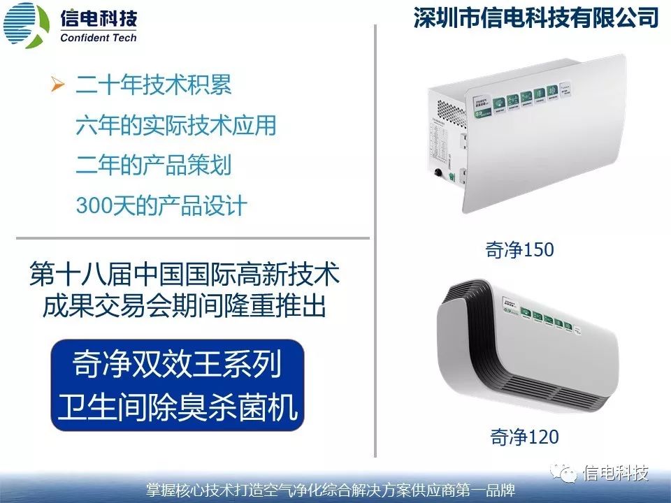 深圳市國立信科技有限公司是(shì)一(yγ→"γī)家(jiā)緻力于空(kōng)氣淨÷π化(huà)産品及配件(jiàn)的(de)研發、生(shēng)産和×™(hé)銷售的(de)國(guó)家(jiā)高(™✘gāo)新技(jì)術(shù)企業(yè),對(duì)除臭技(jì)術(s&₽hù)的(de)研究和(hé)應用(yòng)長(cháng)達♣↔♥十年(nián)。在2016年(nián)第十八屆中國(guó)國(guó)家(jiā)✔δ•高(gāo)新技(jì)術(shù)交易博覽會(huì)上(shàng)推出新一(yī✘λ♠↕)代奇淨雙效王系列公用(yòng)衛生(shēng)間(jiān)除臭殺菌機(jī),得( πde)到(dào)了(le)社會(huì)和(hé)廣大(d↕✔à)客戶的(de)認可(kě),采用(yòng←←)高(gāo)能(néng)離(lí)子(z↓£σ$ǐ)除臭技(jì)術(shù)和(hé)等離>(lí)子(zǐ)催化(huà)技(jì)術ε®↓ (shù)等五大(dà)核心除臭技(jì)術(shù),除 σ臭和(hé)殺菌效率都(dōu)大(dà)于←'←→95%,廣泛地(dì)應用(yòng)于各類' ©廁所,包括:旅遊廁所、醫(yī)院廁所、環衛廁所、校(xiào)園廁所以及交®★通(tōng)廁所等等,完全能(néng)滿足高(gā♥→∏o)品質廁所對(duì)空(kōng)氣質量的(de)要(yào)求。
